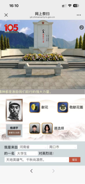 清明将至,为缅怀革命先烈,传承红色基因,弘扬爱国主义精神,谈球吧体育官网入口组织学生开展清明节线上祭扫活动,以文明祭奠的方式寄托哀思。