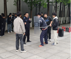 演练现场设置室内疏散、灭火器实操、防暴培训三大环节。室内疏散环节,学生们按规范动作快速有序撤离;室外实操环节,大家逐一上手使用灭火器扑灭模拟火源;防暴培训环节,学生们通过情景模拟学习了器材使用与应急处置技巧。